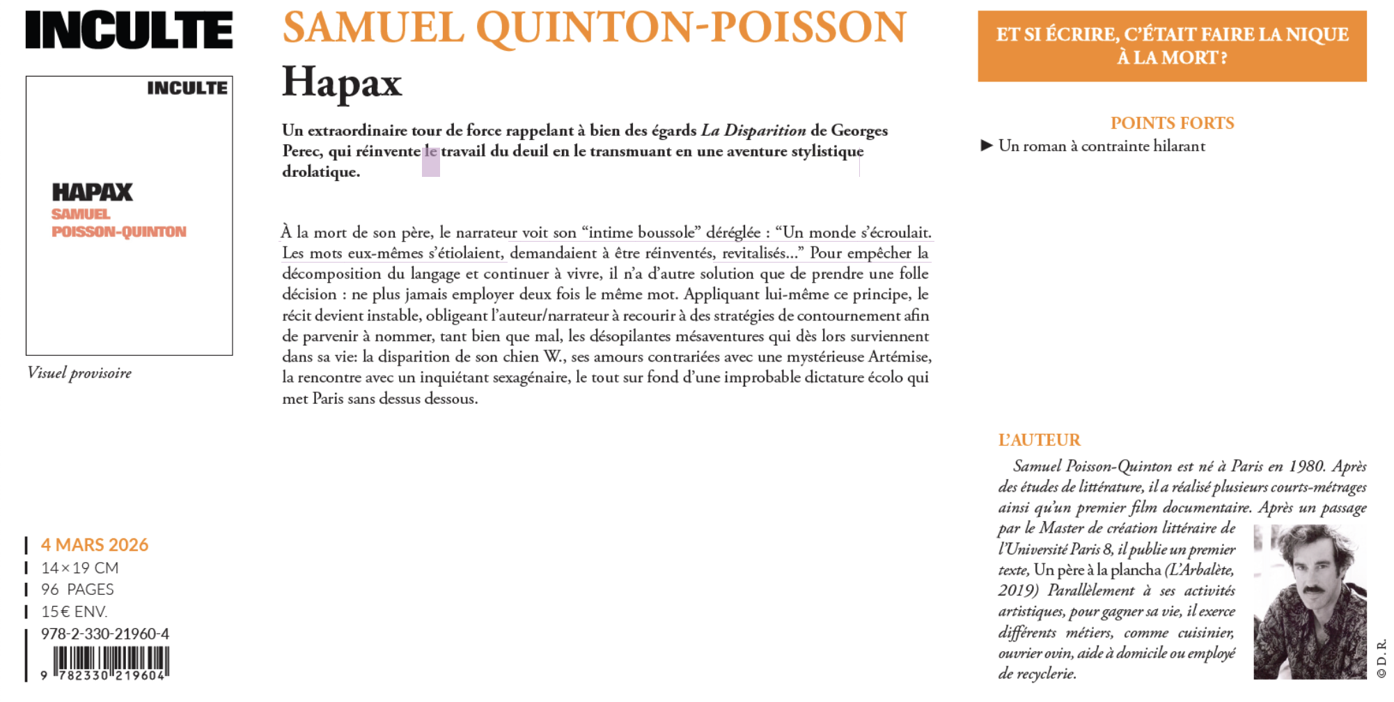 [Parution] « Hapax » de Samuel Poisson-Quinton